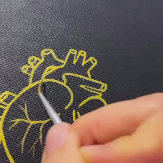 • Tapa pintada a mano con un diseño exclusivo de corazones inspirado en la excentricidad y el ingenio de la obra