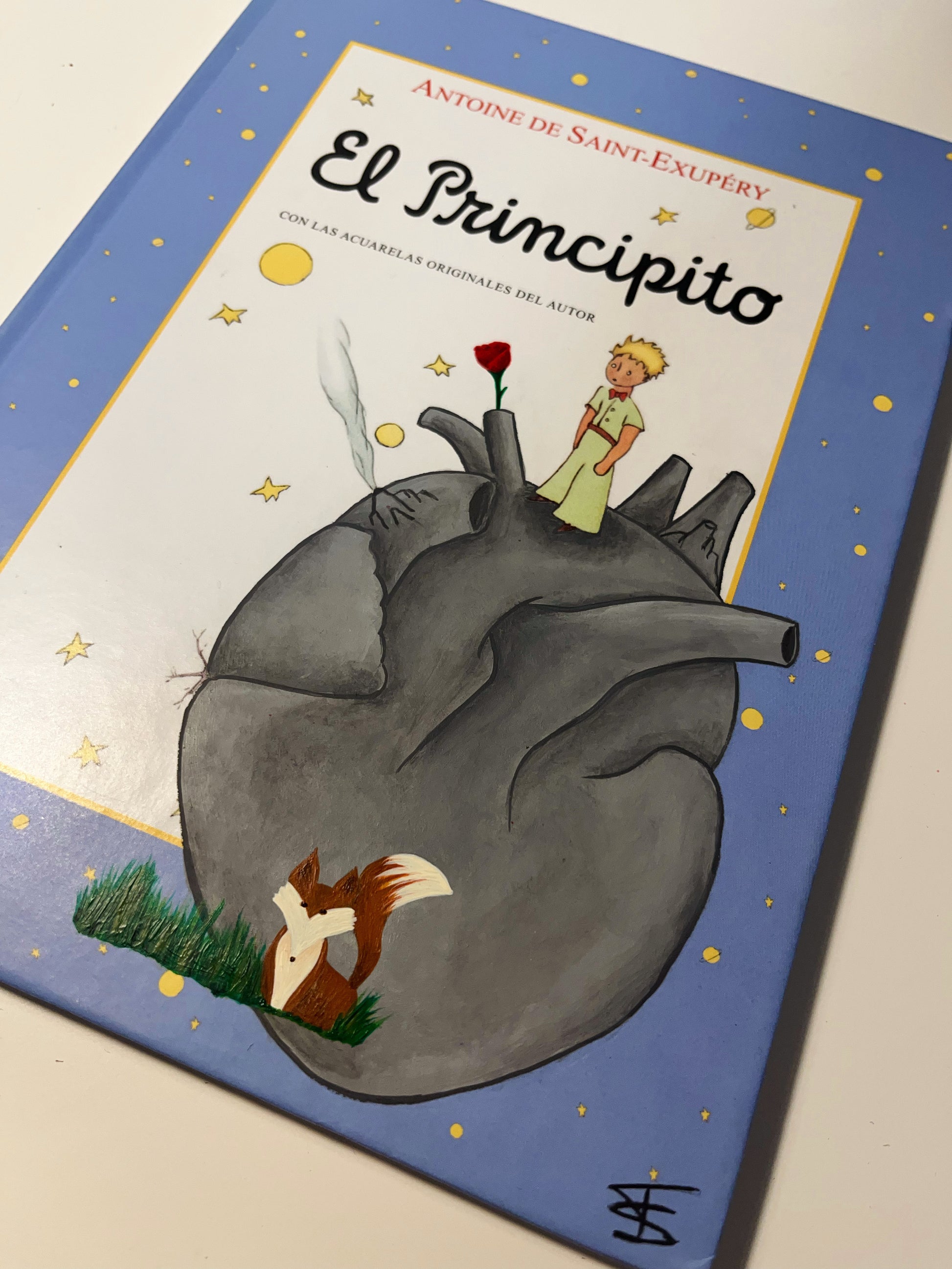 Esta edición especial de El Principito ha sido intervenida a mano, transformando su planeta en un corazón anatómico, símbolo de amor, conexión y la esencia de su mensaje más icónico: