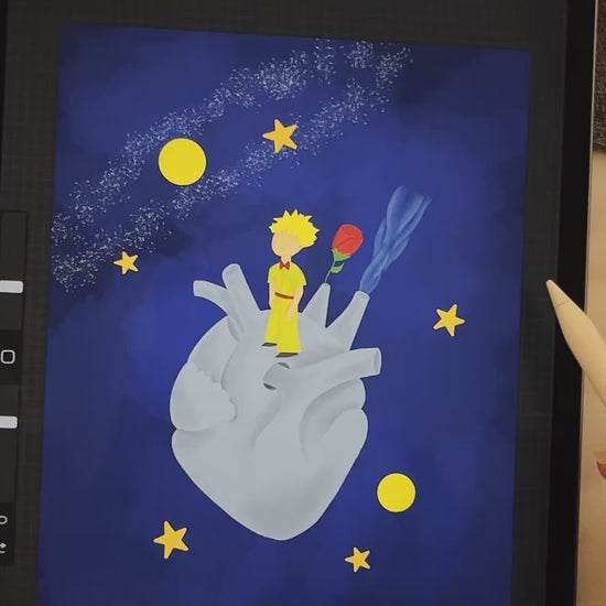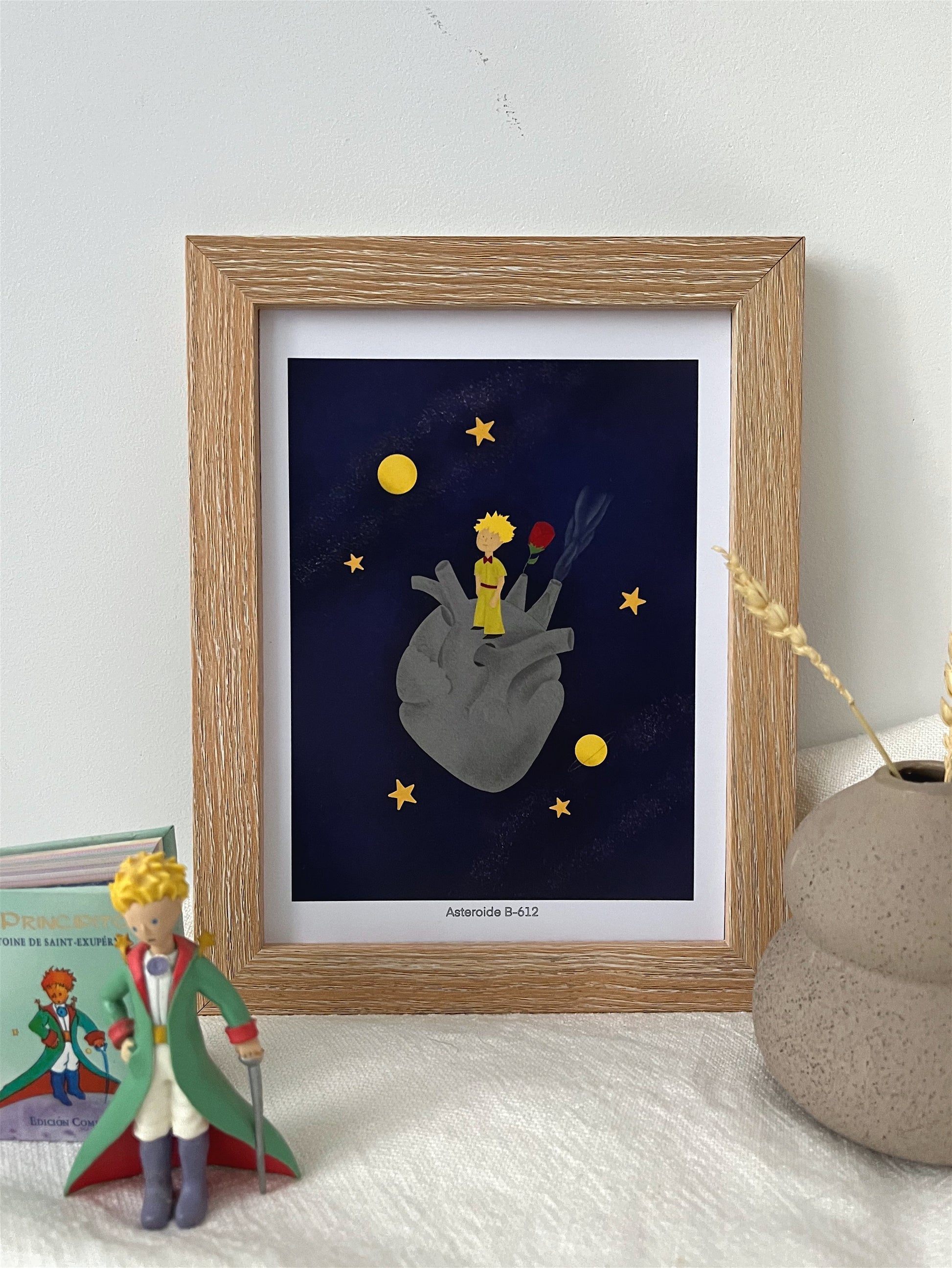 Inspirada en el querido universo de El Principito, esta obra de arte reimagina el icónico planeta como un corazón, simbolizando el amor, la imaginación y la conexión.